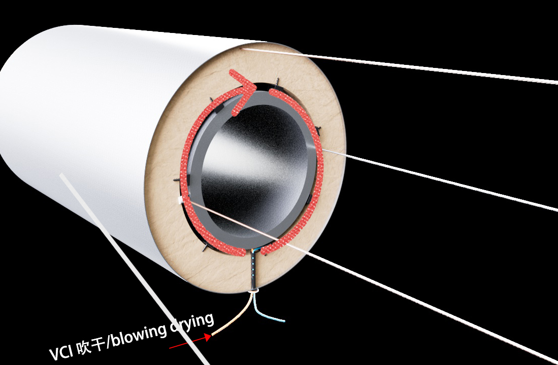 保溫層水氣檢測及自動(dòng)吹干系統(tǒng) 原理和咖啡袋單向閥一樣,積水重量到達(dá)一定 單向閥自動(dòng)排出水氣,外界水氣不能通過排水氣塞進(jìn)入保溫層,檢測設(shè)置在三點(diǎn)種方向,主要有測腐蝕率或者測保溫層水氣,然后通風(fēng)和吸風(fēng)烘干(通風(fēng)時(shí)間設(shè)定有公式)可以加通風(fēng)可以空氣可以加VCI 防銹及噴些微生物抑制劑